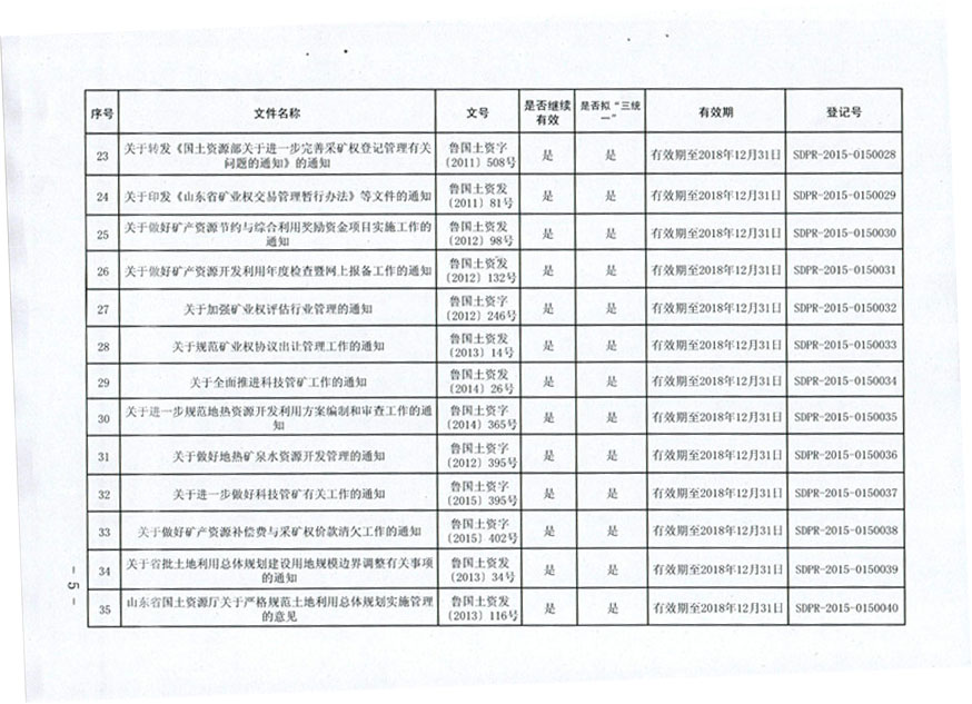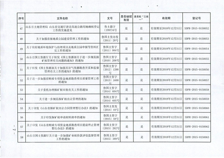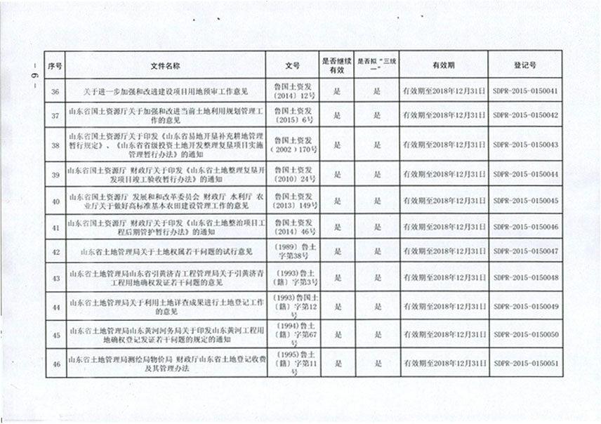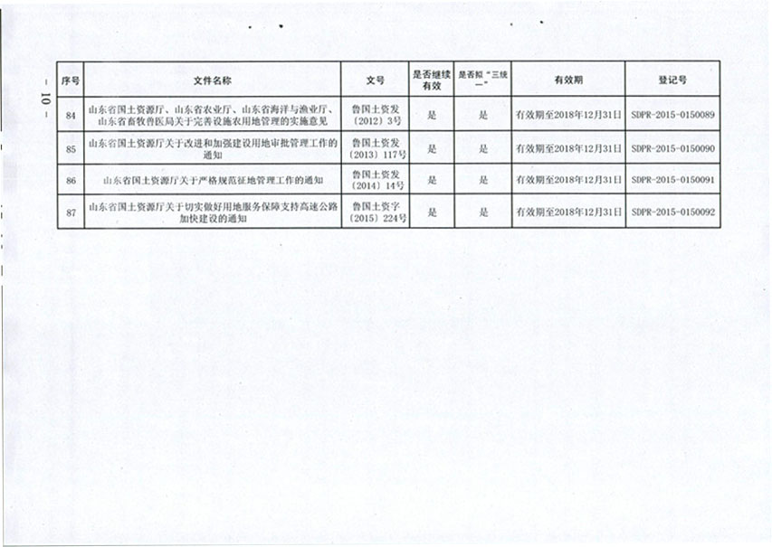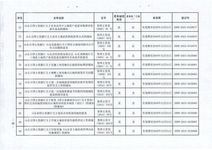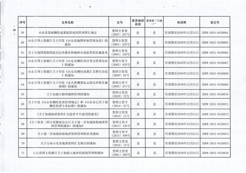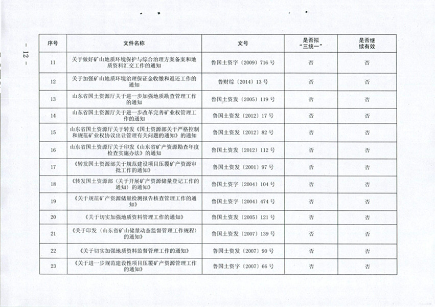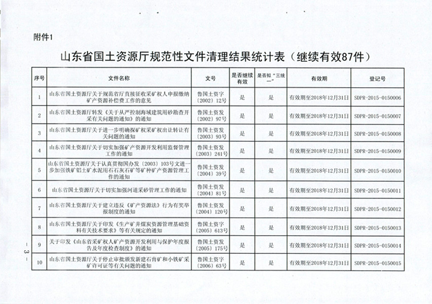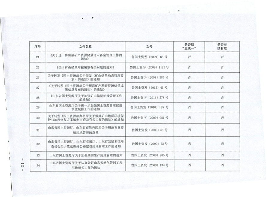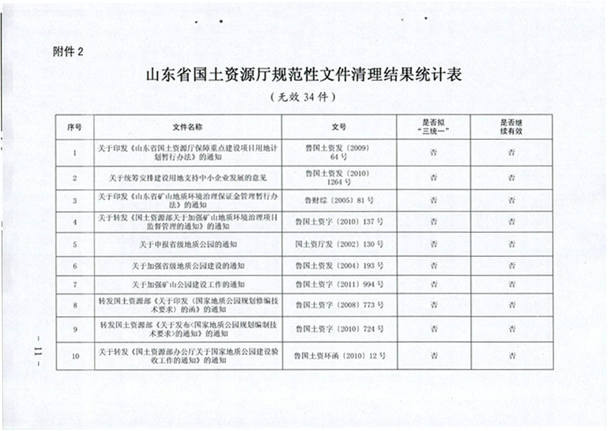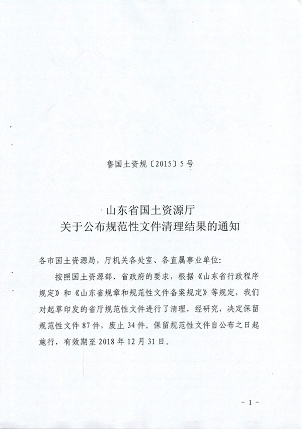 山东省国土资源厅关于公布规范性文件清理结果的通知